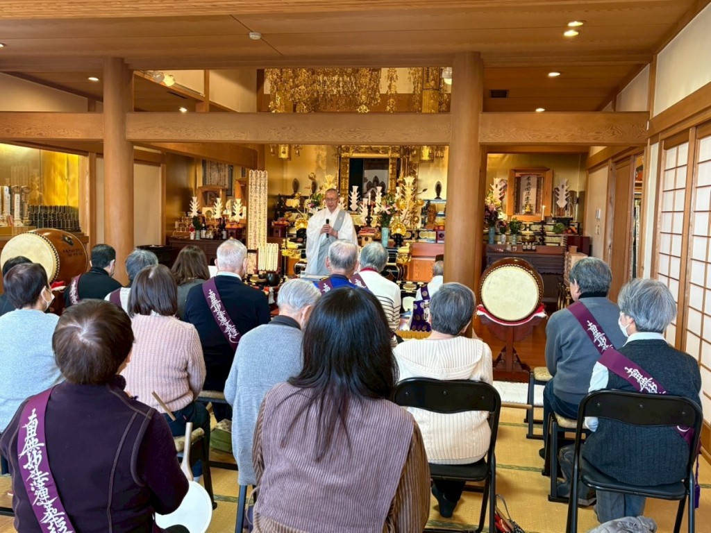 2月1日祈願法要(月守札授与) 令和8年2月1日(日)午後1時より祈願法要(月守札授与)を厳修いたしました。 回向法要に続いて、祈祷法要では、住職より祈祷肝門を唱えながら、木剣によるご祈祷及び檀信徒の皆さまに、撰経を当ててご祈願がございました。 終わりに住職より本年の丙午年について解説がございました。また副住職善隆上人は、遠壽院大荒行堂修行をあと10日で成満を迎えるが、これからが大事になってくるので、気を引き締めて無事成満して欲しいとの話がありました。合掌 善徹記 ツイート